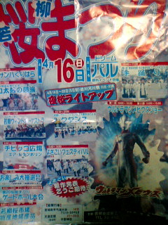お天気にも恵まれ無事終了しました♪参加していただいたみなさま、本当にお疲れ様でした。遠路遥々県外からの参加もあり、本当に感謝です。いやぁ~~、衣装の手直しがさ・・・ギリギリまで掛かって・・・しかも手縫い。なんとか着れる衣装になりましたが・・・お陰で髪をいじる時間も化粧の時間もなくて適当ないでたちで・・・頑張れよ電話も頂いたのにバタバタしてて・・・ごめんなさいね。そんなバタバタ状態で、息子といざ会場へ・・・息子はキッズとしての単独演舞はありませんが総踊りに乱入隊として参加。会場に着くとすぐ抽選券の引き換え・・・お祭りのメインイベント?でもある抽選会があるんです。その券をゲット!私393、息子396。その結果はのちほど。。。13:40いよいよスタート♪栗原統一曲である「よさこい栗原」を全員で踊りました。その後、各チームの演舞。半分のチームが踊り終えたところでまた総踊り♪とりは我がチーム!新曲披露!間違えもしましたがなんとか踊りきりました。結局、「よさこい栗原」「パワー」「歓祭」「南中ソーラン」若桜「新曲(タイトル忘れた)」「よっちょれ」の6曲を踊り狂いました。足がガクガクです。筋肉痛です。でも心地よい痛み・・・。今回のお祭りの新企画として、高知のよさこいを真似て「メダル」を・・・踊りの上手い人、一生懸命踊ってる人、笑顔の素敵な人・・・などなど、お客さんからメダルを掛けてもらえるんです。そのメダル・・・かまぼこなんです。地元「瀧川かまぼこ」さんの「特製かまぼこメダル」面白いでしょ???MEGEREのおかんの企画。そして・・・私もゲットしちゃったんです!!嬉しいですねー。美味しく頂きたいと思います。今回よさこいの時間を多く頂き、地元栗原から7チーム、そして石越、瀬峰からは若桜の旗振りに「RYU’S」さんが・・・そしてそして乱入隊のみなさま・・・県外からも遠路遥々来ていただき本当に感謝感激です!ありがとうございました。って、私は実行委員じゃないのですが・・・演舞終了後写メを・・・マッチとまどかっちょ♪まどかっちょと龍士くん♪おかん♪またみんなで踊りたいです。片付けをしているときに・・・抽選券を持って一足先に会場へ行っていた息子が・・・「お母さん!当たったよ!当たったよ!」「なに!!急がねば・・・」券を握り締め、係りの人に渡し、ステージへ上がる・・・「よさこいのかたですよね?」「はい!!そうです!!!」なんてついてるの?私・・・。景品をもらうばかりでいたのだが・・・「あの・・・393じゃなくて390です・・・」「・・・」息子はどこだ!!いない・・・逃げたか?「このやろ~~~~」恥かかせて・・・ステージにまで上がった私・・・まったくよ~~~。と、こんなドジもありましたが今日一日楽しく過ごすことが出来ました。夕飯は息子と二人で好きなものを買ってきて食べました。私は半額になった「中おち丼」199円也。息子はトロの寿司と肉。美味しかったです。明日から仕事・・・頑張ってきます。あ・・・今日休みだったスタッフけんじさんが観に来てくれました。「カッコよかった。化粧はもっと派手でいいんじゃない?息子もよかったよ」って・・・ありがとー。では・・・髪乾かします・・・