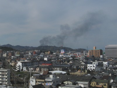 今日9Dを見ようと、北の方向見たら山から煙が出ていたしばらくすると、消防局から松山市防災メールが届く大山寺山門近くでの火事らしい
