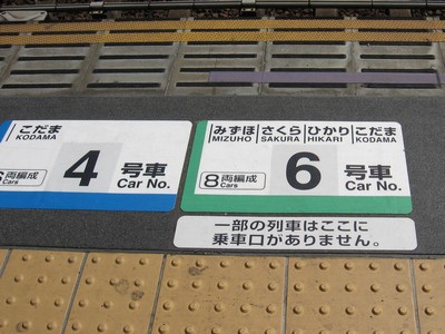 先日、大阪へ行った時(3/8九州新幹線開業前)岡山駅の新幹線ホームには、九州新幹線「みずほ」「さくら」の乗車表示が付いていました