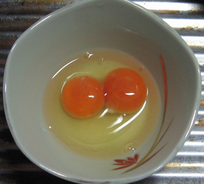 卵の話でした。目玉焼きをしようと卵を割ったら黄身がふたつ一卵性双生児じゃ目玉焼きにしたらこんな感じバカボンの目ん玉つながりのおまわりさん(話が古いか)