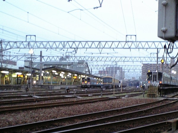 松山運転所のキヤ検夕食後の散歩中でデジカメ持ってなくて携帯で撮ったらブレブレだったトリミングして縮小してもいまいち