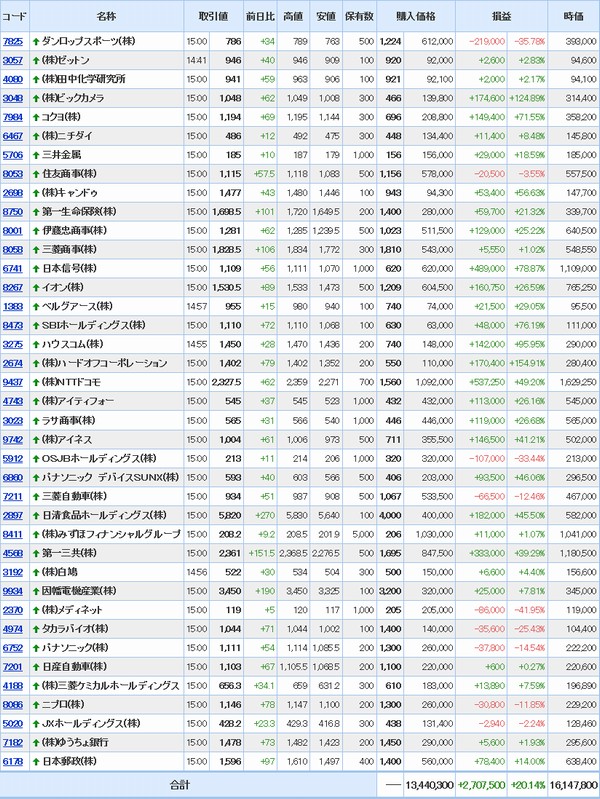 今週末は、+3,197,230円先週末にくらべて、-683,030円 今週の売買買:なし売:なし来週の売買予定買:なし売:なし 自動売買の本はこちらからどうぞ 株主優待ハンドブックはこちらからどうぞ