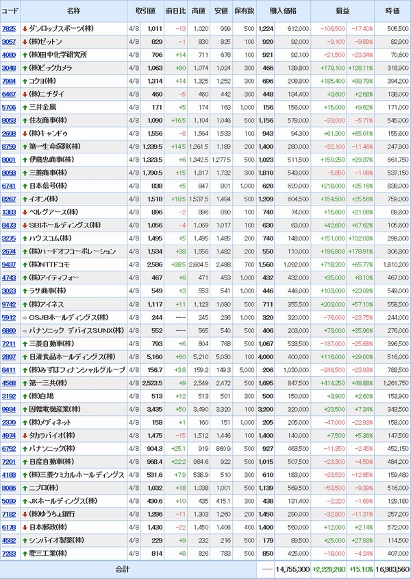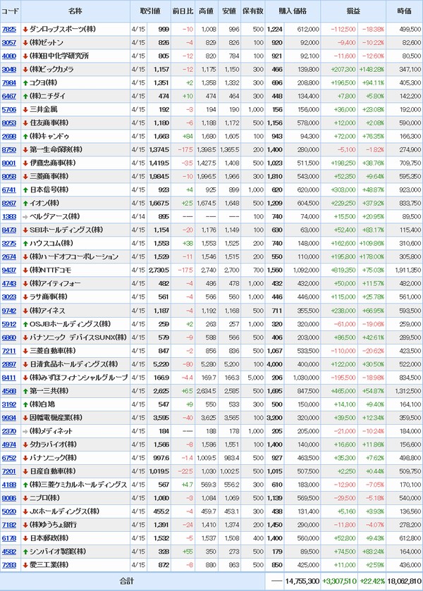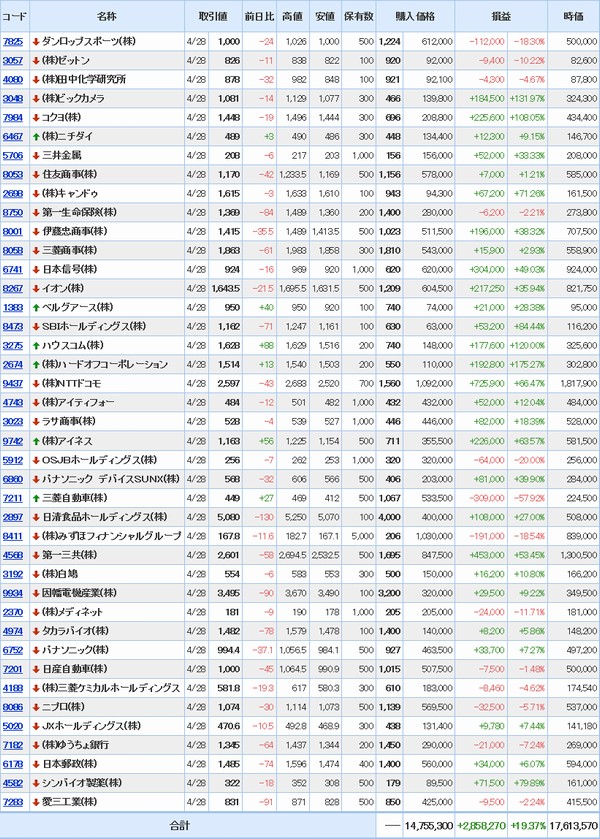 今週末は、+2,228,260円先週末にくらべて、-67,650円 今週の売買買:なし売:なし来週の売買予定買:なし売:なし 自動売買の本はこちらからどうぞ 株主優待ハンドブックはこちらからどうぞ