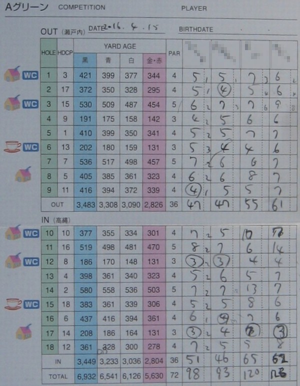 今日のゴルフは、チサンカントリークラブ北条に行った。今回はティーがフルバックからだった51+49=100でちょうど100パー2・OB0・パット17+16=33(8,070円)shotnaviのラウンドデータは、後日値下げされたshot naviの購入はこちらShot Navi Pocket NEO<ショットナビ ポケット ネオ> 【高感度GPS搭載・ゴルフナビゲーション...価格:7,980円(税込、送料込)チサンカントリークラブ北条松山国際ゴルフ倶楽部松山ロイヤルゴルフ倶楽部
