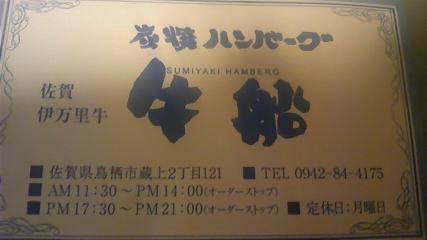 昨日は、ハンバーグを食べた `∀´ よ!!彼の上司お勧めのお店を教えてもらったので、さっそく行ってきました!!なんと炭焼ハンバーグ!!佐賀県鳥栖市にあるのだけれど・・・・『 炭焼ハンバーグ 牛船 』ってお店です。あまりの美味しさに大満足で、写メってくるの忘れました。笑佐賀の伊万里牛を使ってるらしく、ほんと美味しかった!!ハンバーグだけど、平べったくなくて、丸っこくて、初めての体験。まわりはこんがりで、中はレアかミディアム選べるのだ☆ハンバーグなのにレア!? ← (今まで、ファミレスのハンバーグでも満足してたもので・・・。あんまいいやつ食べたことなかたのよ。。笑)価格は、安くもないけど、高くもないかと。あの美味しさで、この値段なら大満足かと。。**サラダ+ハンバーグ(200g)+ライス+ドリンクで1800円ちょいでした★**ちなみにハンバーグが300gになると、2400円ちょいだったかな。お勧めのレアでたべたのだけど・・・ユッケを食べてる気分・・・。これはハンバーグなのか!?あまりの美味しさにほんとビックリでした!!逆に、これが真のハンバーグなら、今まで食べてきたハンバーグは一体・・・?しつこいけど、ほんと美味しかったなりよ。佐賀にお越しの際は是非行ってみるべし!!!以上、ハンバーグでした。