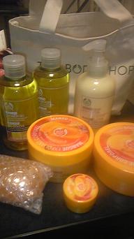 でした。笑また一つ、年をとってしまいましたなんだか、特に誕生日という感じもしない平凡な一日で。。すっかり誕生日だということを忘れてしまった一日の最後の最後に…職場の子がご飯おごってくれました笑私が仕事だったから彼にも会えず、なんだか寂しい感じだったけど、最後の最後で嬉しかったですちなみにうちの会社、誕生日の月にギフトカタログが送られてくるというありがたいサービスがあるんです体重計や掃除機など、ちょっとした家電等はそれで毎年増やしてるのよね。笑今年は!!悩んで悩んで悩んだあげく…20代後半に差しかかることもあり、、、、美容を気遣う、ボディケアセットにしました^^ THE BODY SHOP の、マンゴーボディーケアセットなり・ボディシャンプー ×2・ボディスクラブ・ボディバター・ボディローション・リップバター・ボディソープが入った詰め合わせに、おまけのバッグ付きたくさん入ってて、なんだか幸せな気分になりました。笑これで、女を磨かねば…笑 ※ マンゴーの香り漂う女性とすれ違ったら… それは私かもしれません。笑 なーんてね では、おやすみなさい!!