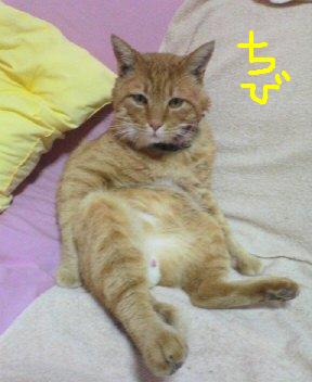 こんばんわ。実家のちびたんです。 ちびというのは名前だけ。めっちゃデブ猫なのだ。笑小さい時に拾ったのだけど、当初は、すごくちいさくて・・・。 ← いや、当たり前。。よく喧嘩して、しばらく左ほっぺがエグれたり・・・。やんちゃですが、マイペースで甘えん坊なのだよ。ちなみに、この写真は、ちょうどホッペを怪我してる時なりよ。猫って、猫によって整ってる顔だとか、ブサイクな顔とか様々あるけども・・・ちびはイケメンです。ふふふちなみに、このイケメンちびたんをうちの母が描くと・・・・ 何故こうなる・・・?いったいどうやったらこんなに鍛え上げた肉体に・・・?股についてるものはシッポなのか・・・?それとも・・・。。はぅっっセンスゼロなように思えて、意外にセンスあるかもしれん。笑この絵を見ると、元気出るもんね。。では、おやすみなり。