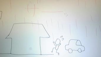 今日は…悲惨でした。休憩中、買い物に行こうとコンビニに車を走らせました。車を降りると、雨がザーザーぶりでした。。急いで屋根があるとこまで走りました!!屋根があるとこへたどりつき・・・足を踏み入れた瞬間 ツルっ・・・ハゥっっ!!!ひゃぁー・・・・・。こんな感じでした。言葉では伝わらない痛みと恥ずかしさだったため、絵を描いてみました。笑ちなみに、絵心の無さは母親譲りです。。いやー・・・やっと屋根があるところに入れたと思った瞬間のこの出来事、悲しすぎるでしょう・・・長袖を着ていたにも関わらず、ヒジから出血しました。両腕&腰にアザが・・・。とりあえず、両ヒジついたので頭は打たずにすみましたが、私の体重を瞬時にヒジで支えたため、ヒジが痛すぎる・・・´ω`;この年になって、あんなコケ方をするとは・・・。周りをキョロキョロする余裕もなく・・・瞬時に立ち上がり、何食わぬ顔でコンビニに入って行きましたとさ。笑