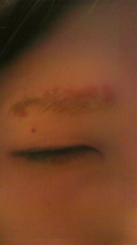 先程・・・まゆ毛を脱色しながらのんきに日記書いてたら・・・まゆ毛のことをすっかり忘れておりました。気づいた時には無残な姿に。。あわてて脱色剤をふき取ると・・・・自分の皮が一緒にめくれました。おそらく、20~30分は放置してたのではないでしょうか。。周りが赤く腫れあがり、あちこちに水膨れのようなものが・・・。拭き取ったときに、水膨れの一部をはぎ取ってしまったようで、皮がめくれておりました。最悪・・・・。しかし、肌はこんな状態になりながらも、まゆ毛の色はさほど抜けていない。どんだけ濃いんかって話よね。はははっとりあえず、半端なく・・・痛てぇぇぇぇぇぇぇぇぇぇぇ