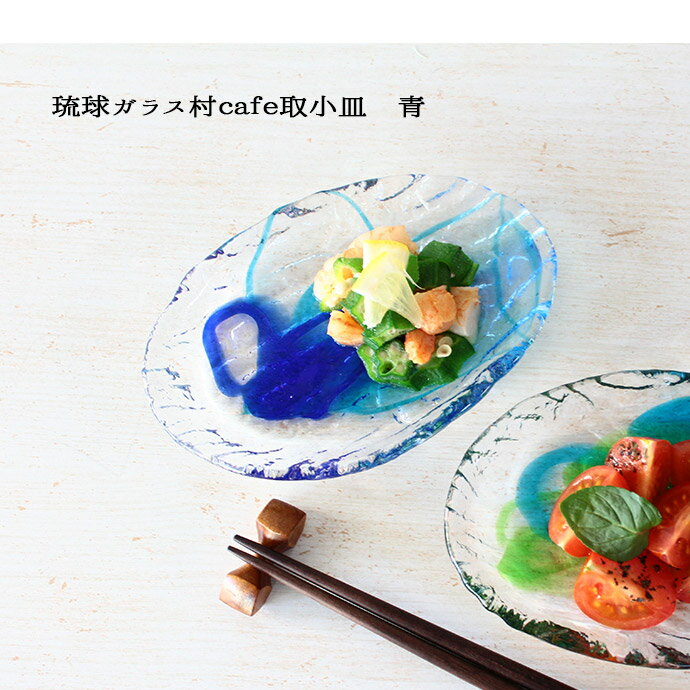 琉球ガラス村cafe取小皿 青【琉球/ガラス/日本/一輪挿し/沖縄/cafe/取小皿/カフェ/手づくり/手作り/贈り物/ギフト/海/ソーダ/職人/夏/プレゼント】
