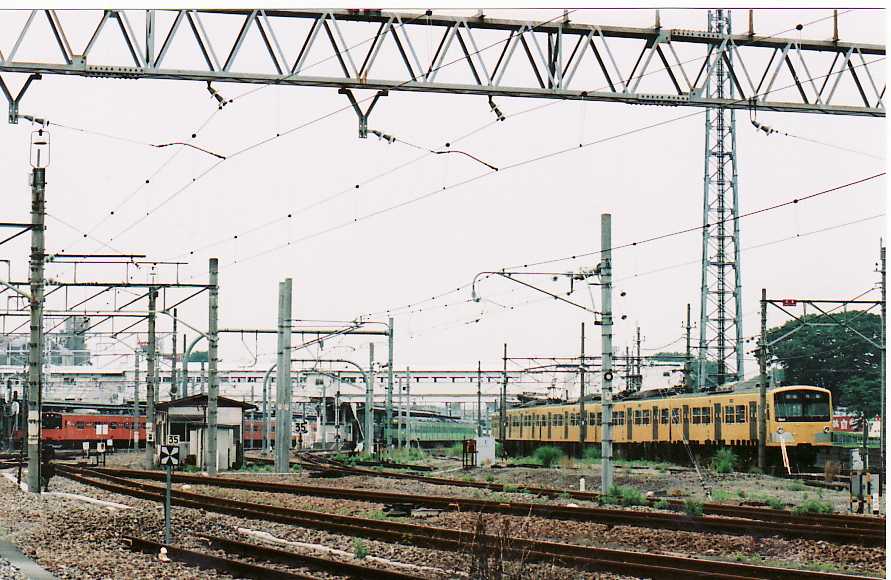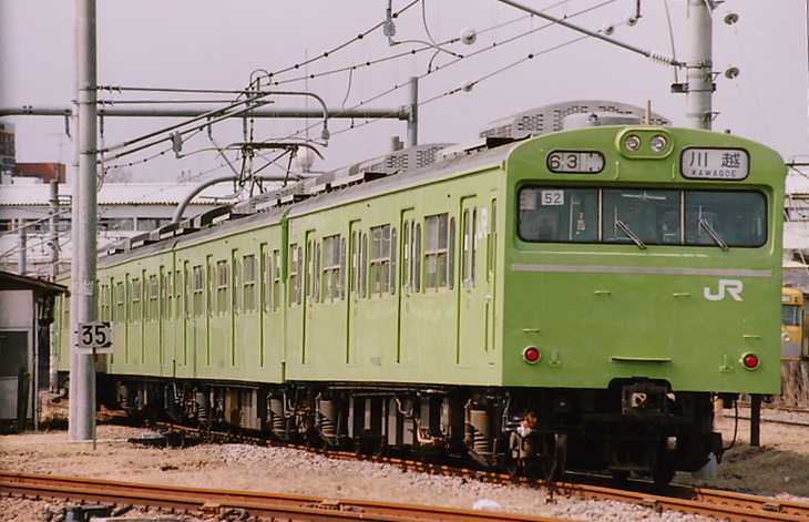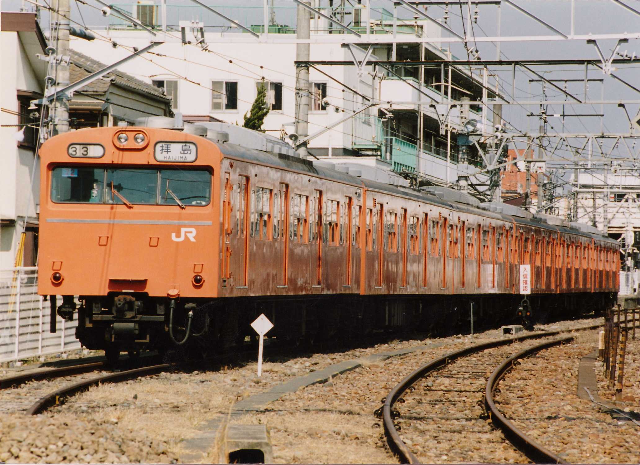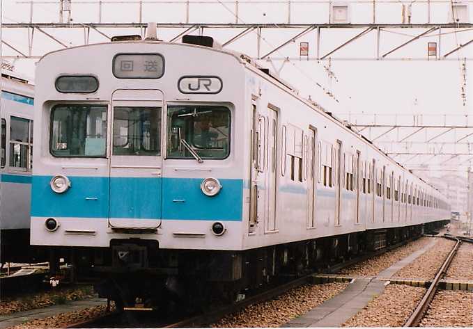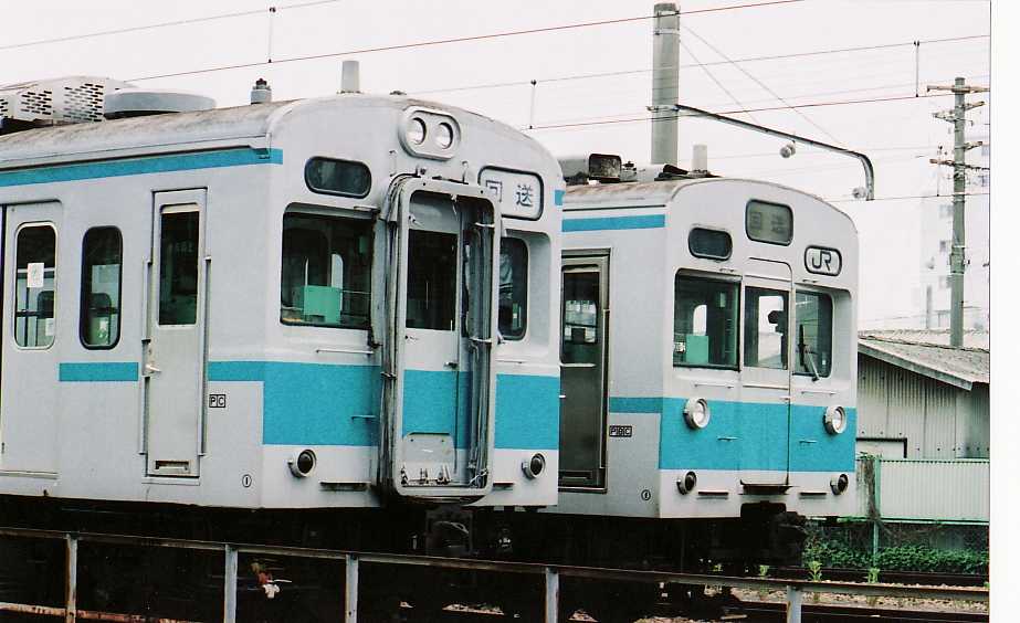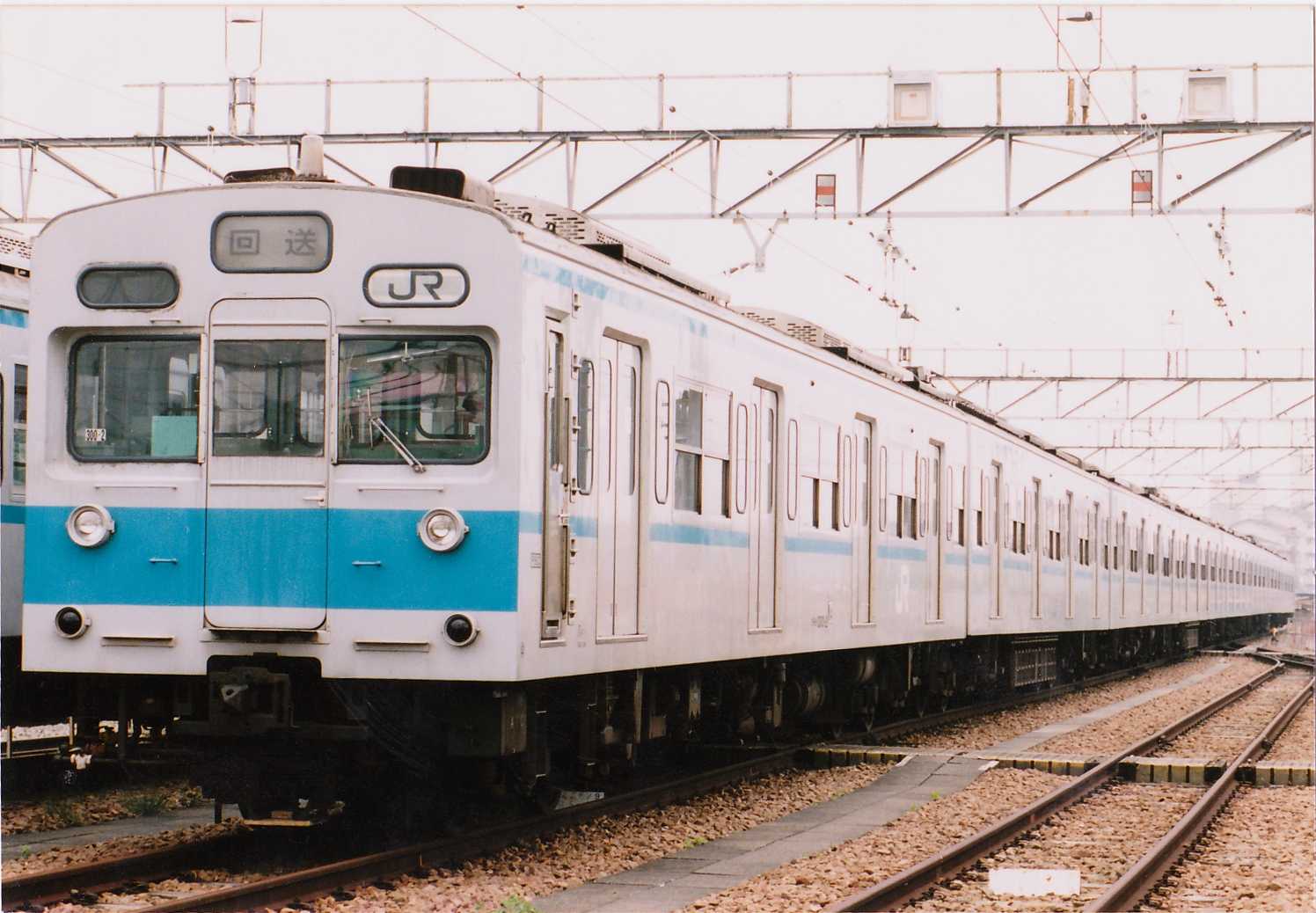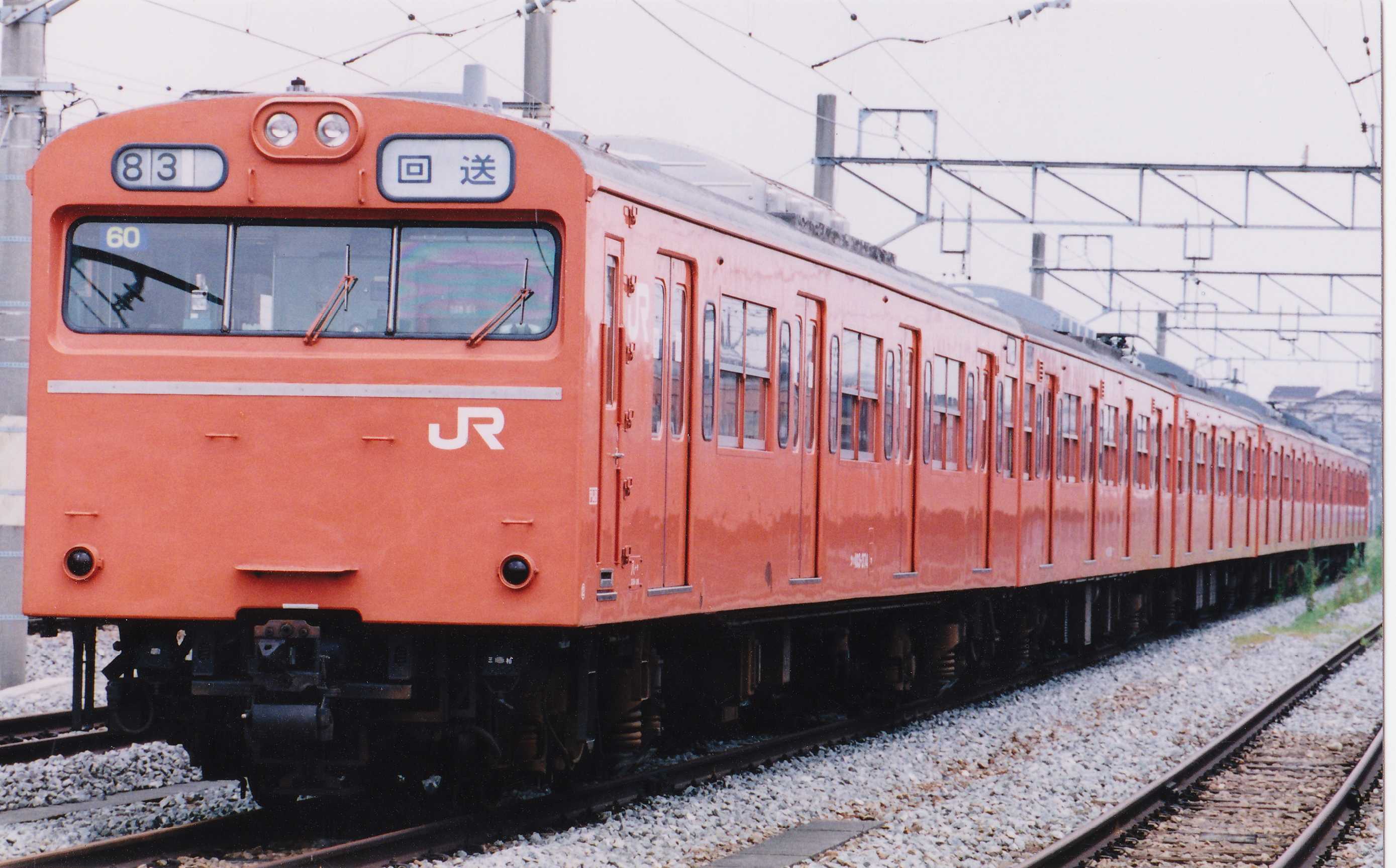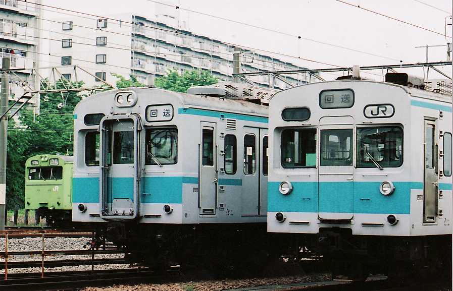 留置線にいた201系。103系置き換えが始まる頃で、転属の準備が整い、疎開されていたのでしょう。