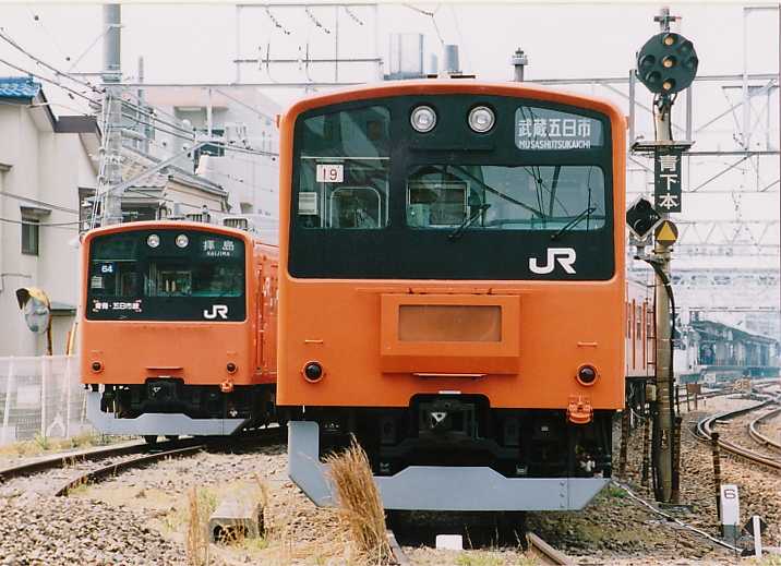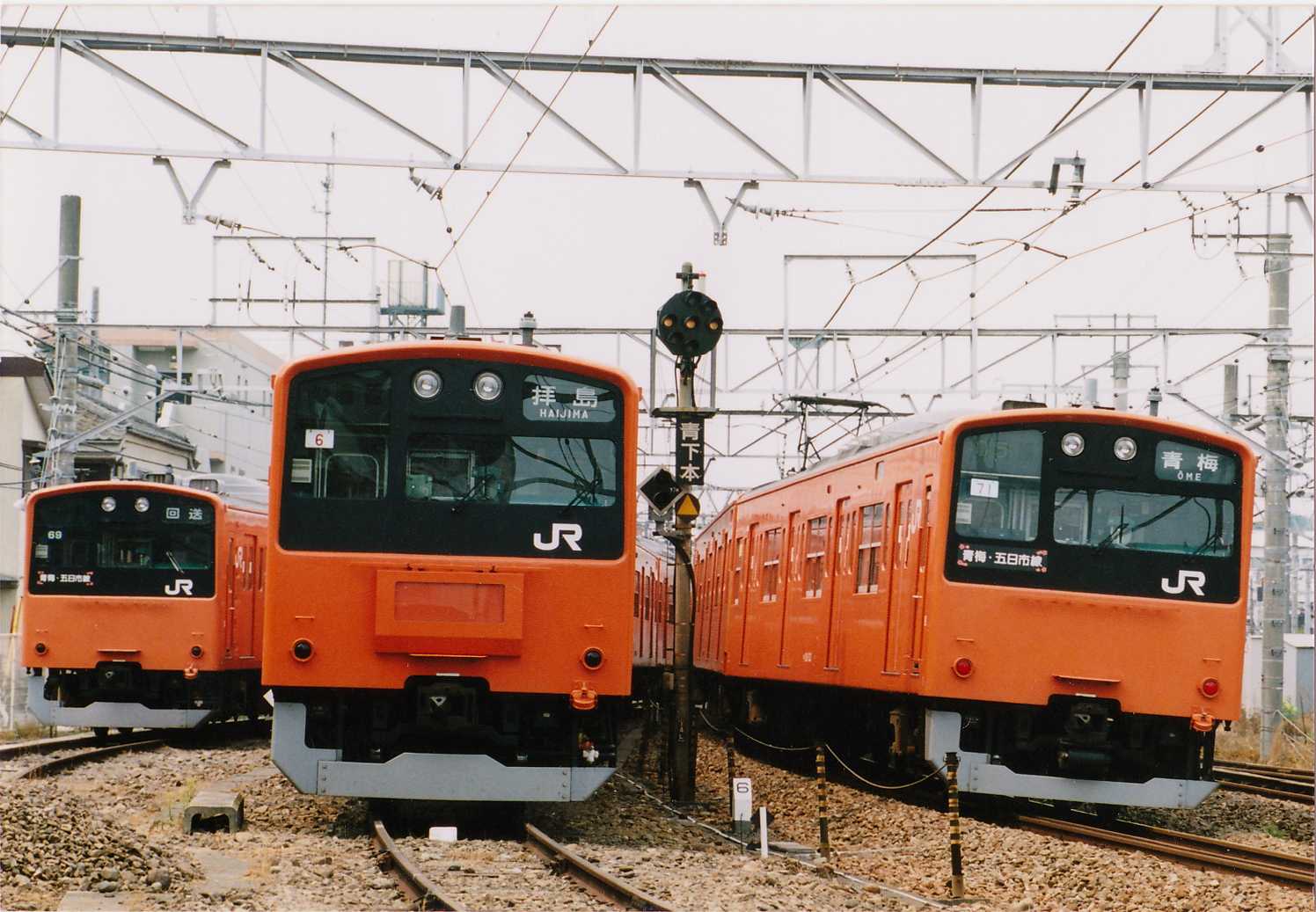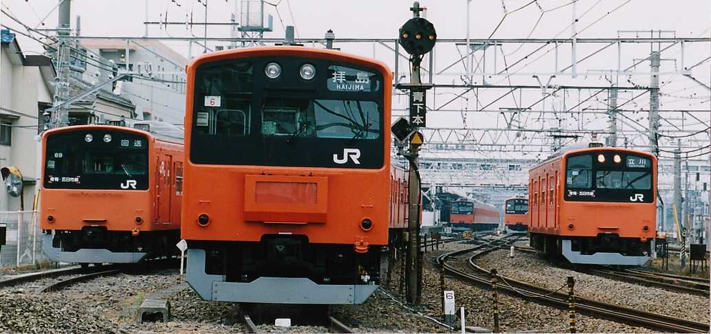 さらに奥に2本、拝島駅に停車中の201系も見えます。