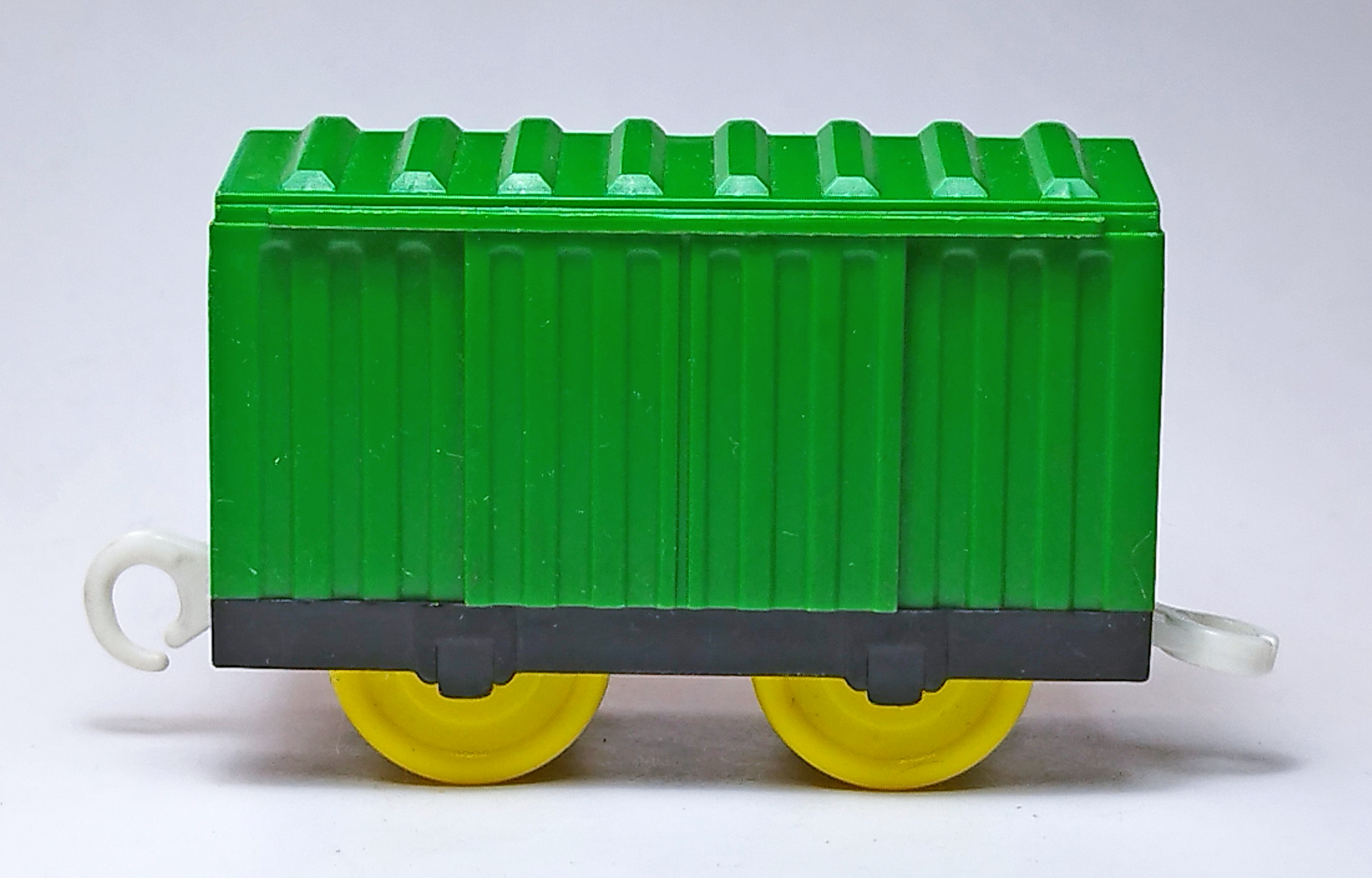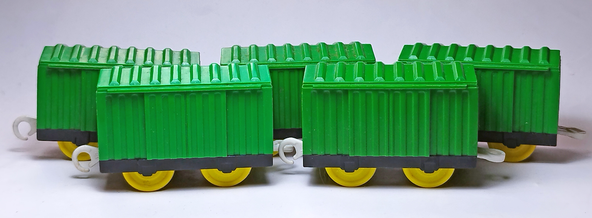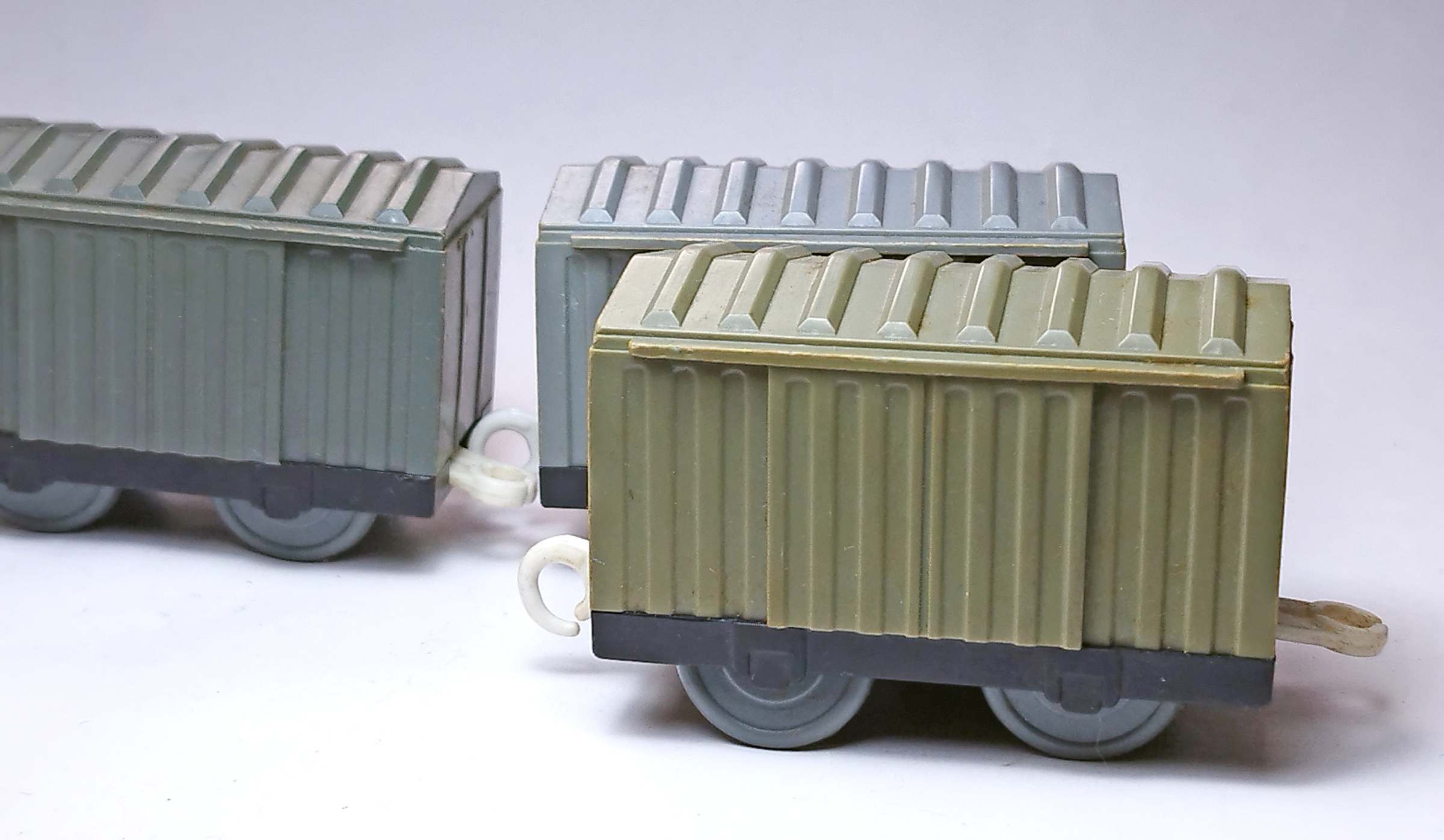 貨物列車のセットや、トーマスもの編成に組みこまれていたりし、さらにはプラレールらしく?カラフルな車両まで。