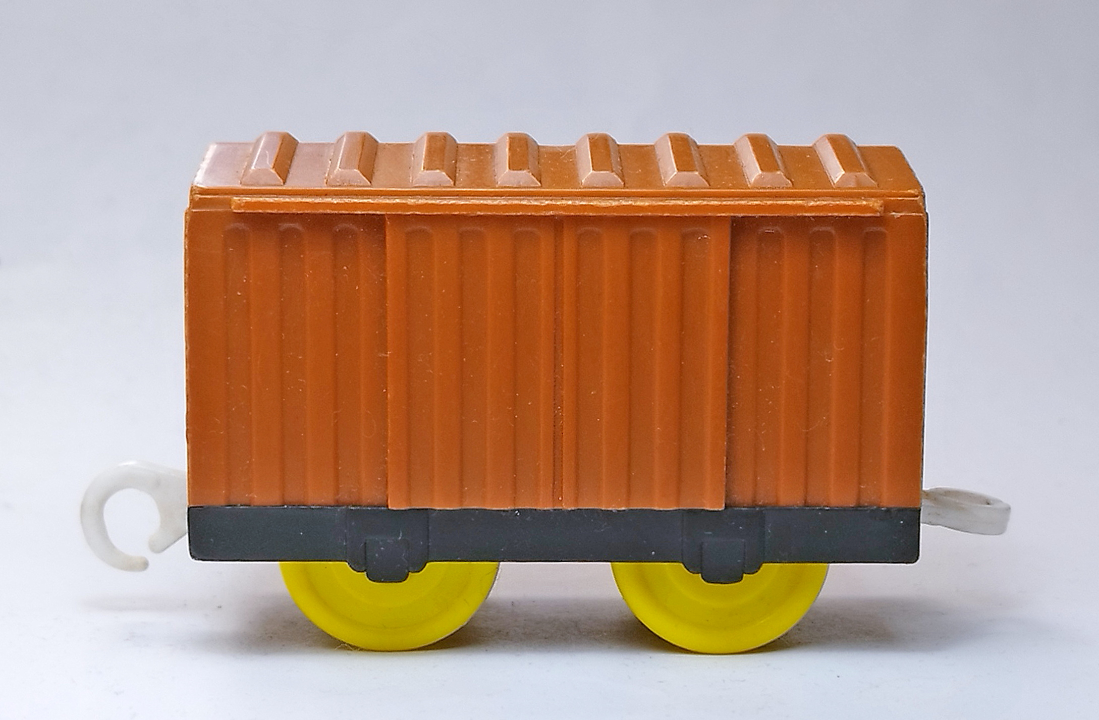 茶色は3両います。車輪が黄色なのがプラレールっぽい。