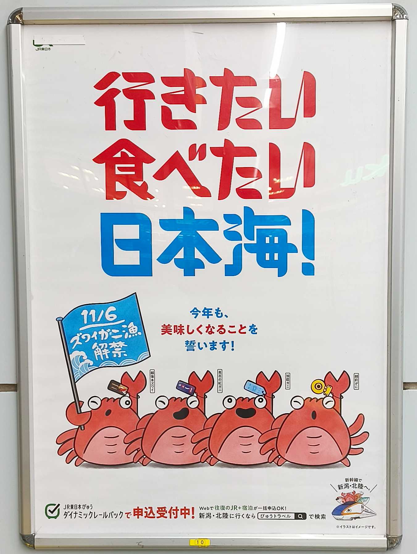 このポスター自体、北陸新幹線沿線向け広告なので、向こうのエリアのカニのみ登場しています。