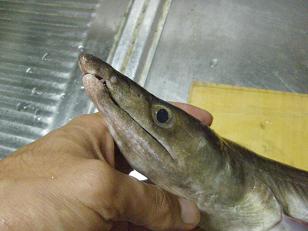 頂いたハモを初さばき。口の中はとがった歯。何を食べているんだぁ?こんなにでっかいハモをもらったんですよ。見よう見まねでさばいてみました。おなかの中にはイカが入っていましたよ。ハモってイカを食べるのかぁ~。しっかりと脂がのっていますねぇ。どんな料理にしようかなぁと検討した結果、ハモのムニエル。味はとってもおいしかったですよ~。ただ骨切りがうまくできていなかったなぁ…。骨って皮の近いところまであるんですねぇ~。さばいてみて初めて知りましたぁ。