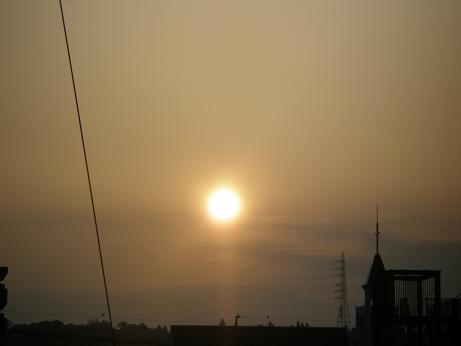 今日も暑くなっている鹿児島です。最近になって、太陽の光が部屋に差し込む角度が変わってきましたよ。少しずつ秋が近づいているんだなぁ…と感じますね。今日の朝焼けの写真。モヤがかかっていてとても綺麗な太陽とご対面です。