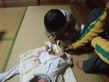 おはようございまぁす早いもので、11月になりましたね。昨日は半袖Tシャツで過ごせるような陽気だったけど、今日は、さすがに寒いですねいよいよ冬到来間近って感じです大ちゃんが生まれて、早3週間。あーちゃんは、立派なお姉ちゃんぶりおむつ替えにおむつの洗濯ものをたたんだりと頑張ってますよ。3週間たった大ちゃんは順調に成長中。体重はすでに4710gになりました