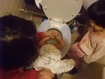 おはようございまぁす今日も天気が悪いですよ。昨夜から冷たい雨が降り続けています今日は、大ちゃんのトイレ練習中の紹介女のことは違って男の子は、おしっこやうんちのタイミングが分かりやすいのかな1日に1回~数回は、トイレでできる大ちゃん。あ~ちゃんのときは、こんなにできなかったけどな。時々、すごい音が聞こえてきて、思わず笑っちゃう父ちゃんです昨日は、久しぶりに大ちゃんと一緒にお風呂に入った父ちゃん湯船でプカプカ浮きながら漂って気持ちよさそうな大ちゃん。仕事で疲れていたけど、ちょっぴり幸せな気分を味わった父ちゃんでした