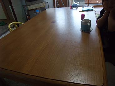 おはよ~ございます昨夜は暑くて、寝ながら寝汗をかいちゃいましたそして今日は鼻水がとまりませんあーちゃんも大ちゃんも暑かったらしく、コロコロ転がりながら寝てたらしいです。家族が増えるにつれ、我が家の家具も少しずつ巨大化してますこのテーブルは、リサイクルショップで購入です。すごく大きくなって、ごはんの時が少し物足りなさを感じるぐらい大きいこの机だったら大人4人、こども2人でも余裕です徐々に巨大化し始めている家具。次はテレビかなその前にアナログ終了日はどんな感じになるのかを見てみたいと思っている父ちゃんなのでした