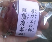 紫さつまいもで黄色いサツマイモを包んであるんですよ。しっとり甘ぁ~いお菓子をいただきましたぁ。