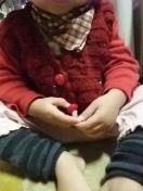 よしゅちゃんのお母さんが手編みで作ってくれた赤いカーディガン(^o^)