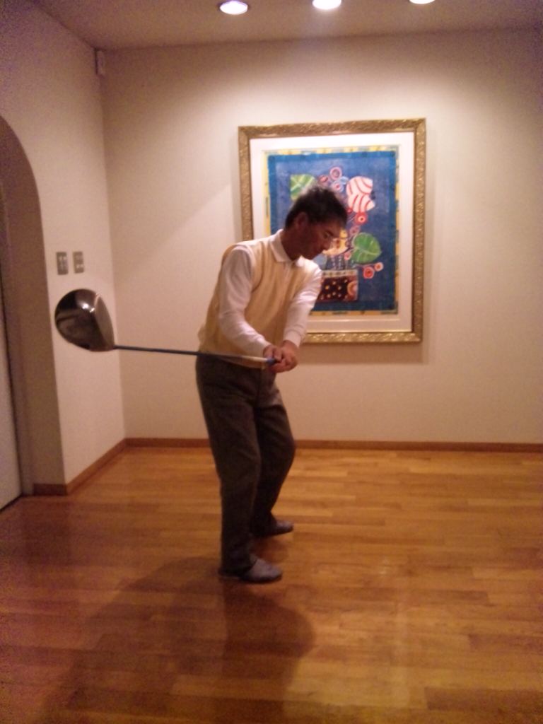 テイクバックですね。フェースを開きながら上げていますね。トップですね。フェースは正面を向いていますね。ダウンスイングですね。クラブがやや外側から下りてきていますね。やはり、パーシモン~メタルと小さなヘッドのドライバーを使っていた頃に身に着いたフェースを大きく開閉しながら打つスイングになっていますね。このタイプに合うのは、ヘッドがシャープにターンする重心距離の短いクラブ。ということで重心距離が短くてイージーな印象のクラブを物色すると…ゼクシオセブンRAZR-FITベレスS-02マックテック・ナビインプレスX-ZorD202こんなところが良さそうです。
