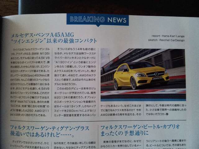 9月21日(金)、晴れです。まだまだ暑いですね…、暑さ・寒さも彼岸まで…。そんな本日も通常業務です。午前のお仕事終了。午前中にゴルフ雑誌「ゴルフ・クラシック11月号」が届いていました。今回はシャフトの特集ですね。それではじっくりと研究しますか…。男子ゴルフツアー:パナソニックオープンの第2日(予選ラウンド)を終えてのトップ5は…1位 -10 藤田 寛之 2位タイ -9 D・ベック 2位タイ -9 J・パグンサン 2位タイ -9 小田 孔明 5位タイ -8 上平 栄道 接戦ですね。カットラインは-1辺りのようですね。ホストプロの石川Pも本日は好スコアを出して-6で予選通過ですね。池田Pは大崩れで中段に埋もれましたね。女子ゴルフツアー:ミヤギTV杯は第1日目を終えてトップ5は…1位タイ -5 不動 裕理 1位タイ -5 金田 愛子 3位タイ -4 茂木 宏美 3位タイ -4 フォン・シャン・シャン 5位タイ -3 酒井 美紀 尖閣や竹島でゴネル国籍の選手は万が一の場合はそれ相応の覚悟をしてもらわないとね!!明日から連休ですか…。何をして過ごそうかな…。「バイオハザードVリトリビューション」でも見に行こうかな…。行くなら3D字幕のシアターがいいな…。県美の「マルク・シャガール展」も見に行きたいな…。【パリモーターショー12】アウディ S3 新型…パワーは300psの大台に 2012年9月21日(金) 19時00分【パリモーターショー12】アウディ A3 新型、5ドアのスポーツバック登場 2012年9月20日(木) 14時30分