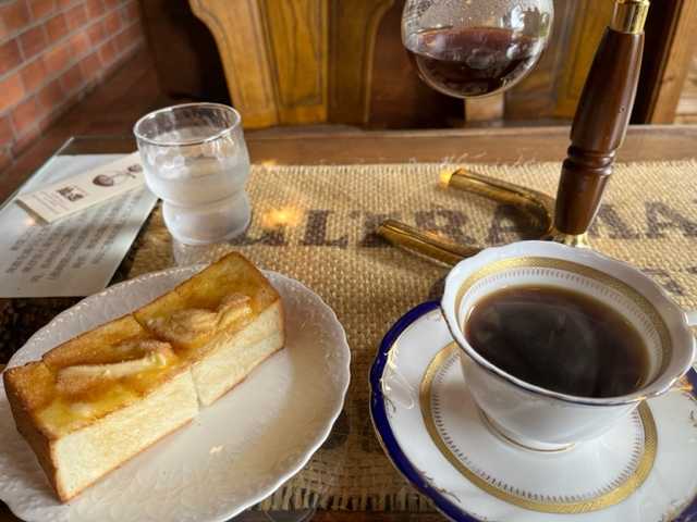 午前の移動時に「緑の館」でロイヤルブレンドとモーニングをいただく。