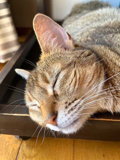 新聞に目を通し、朝食を済ませ、ロマネちゃんと戯れる。