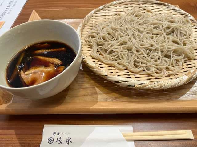 ランチタイムにゲートテラスの「岐水」で鴨汁ざる蕎麦をいただく。