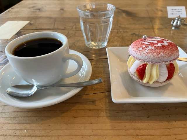 午後の移動時には「ジークフリーダ」でマカロン・ドゥ・プランタンとコーヒーをいただく。