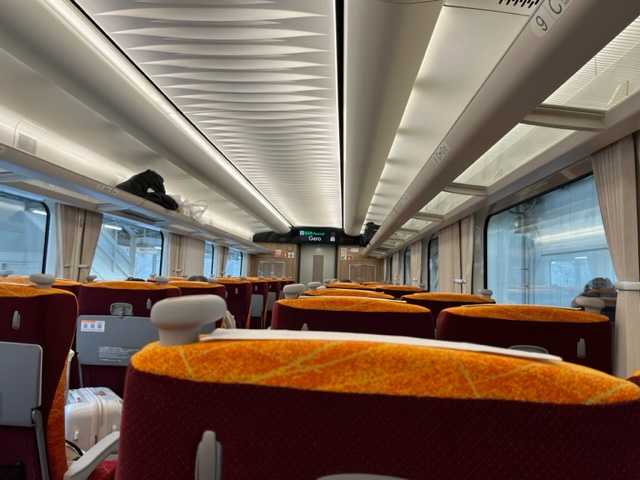 朝のJR特急指定席は60%程度の乗車率でしたが、帰りは2~3%でしょうか…。
