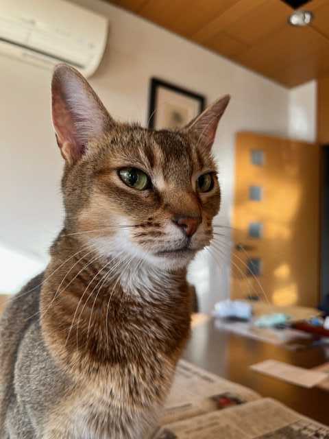 新聞に目を通し、朝食を済ませ、ロマネちゃんと戯れる。
