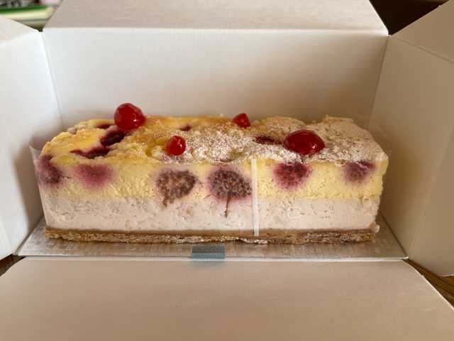 16時からの国内女子ツアーのTV放送を観戦しながら、コーヒーと「ジークフリーダ」のラズベリーのチーズスフレをいただく。