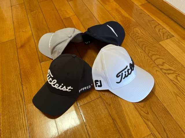 帰り道のいつものゴルフショップでお気に入りの「タイトリスト/フットジョイ」Wネームのゴルフキャップを色ち買い(黒・紺・白・グレー)する。