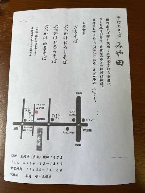 高岡の近くで下りて、リサーチでひっかかった「手打ちそば・みや田」へ。