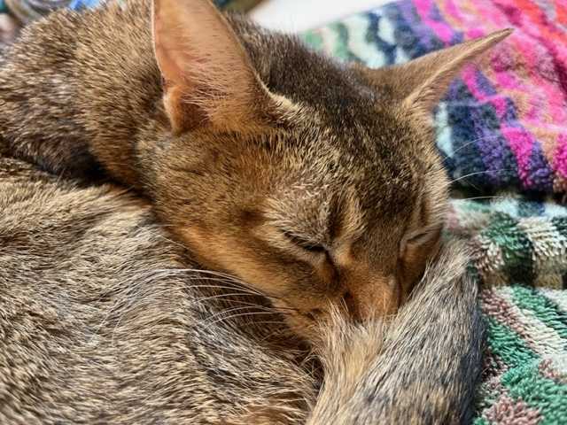 新聞に目を通し、朝食を済ませ、ロマネちゃんと戯れる。