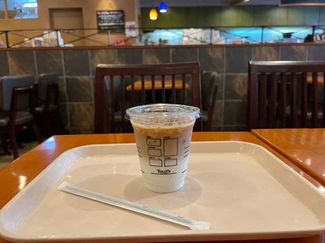 食後のコーヒーブレイクはアイスカフェラテをいただく。