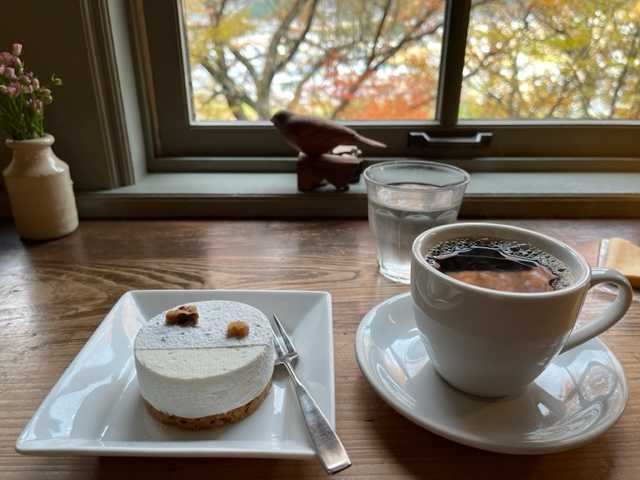 午前の移動時には「緑の館」でロイヤルブレンドとモーニングのパンをいただく。