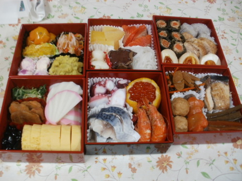 あけましておめでとうございます昨年は予想通りのブログサボりまくりの一年となりました。でも、こうしてなんとか一年をまた乗り切れた事を感謝しています。体調はわりと落ち着いています。一昨年あたりからの激痛も徐々に収まり、なんとか痛み止めの服用でセーブできるくらいにはなりました。病気自体は悪化が否めませんが、まあこれは仕方ありません。今笑っていられる事に感謝して、宥めたり足掻いたりだまくらかしたりしながら、この病気と上手くつきあって行こうと思います。それでは、今年のおせちです。 href="http://thumbnail.image.shashinkan.rakuten.co.jp/shashinkan-core/thumbnail/?title=PC310053.JPG&pkey=2411e766229b29c31bb652c9b309d54e7e476af7.23.2.2.2a1.jpg" TARGET="_blank" >数年前から使っている山中塗りのオードブル二段重に一段買いたし、三段重にしました。一段が小さいの2つの横並びになるので全部で6つの枠になっています。それでは一段ずつ。 href="http://thumbnail.image.shashinkan.rakuten.co.jp/shashinkan-core/thumbnail/?title=PC310062.JPG&pkey=5d01a2dede904baa8ae1334aab70c77292a90629.23.2.2.2a1.jpg" TARGET="_blank" >一の重紅白かまぼこ伊達巻き水菜のからし合えシナモン柿黒豆柿生酢栗きんとん金柑の甘露煮柚子の砂糖漬け紫芋のデザート以上、10品です。href="http://thumbnail.image.shashinkan.rakuten.co.jp/shashinkan-core/thumbnail/?title=PC310065.JPG&pkey=bfa0a44af29a38c35e5d500b04f2a15d200e7550.23.2.2.2a1.jpg" TARGET="_blank" > 二の重柚子釜いくら海老の柚子塩焼き真ダコしめ鯖サーモンかずのこあみたけ大根ゆり根の含め煮以上、8品です。href="http://thumbnail.image.shashinkan.rakuten.co.jp/shashinkan-core/thumbnail/?title=PC310066.JPG&pkey=21403208197d8f2e74b71f6623a0d504aaa2f3af.23.2.2.2a1.jpg" TARGET="_blank" >三の重京芋の白煮煮鶏煮卵昆布巻きぶりの塩焼ききんぴらごぼう松前漬けこんにゃく・人参・肉団子の煮しめ以上、8品です。かまぼこ以外は全部作りました♪とは言え、たこ、サーモン、しめ鯖などはカットしただけ、かずのこやあみたけは塩抜きしただけですが。海老はソフトシェルシュリンプを使っています。脱皮したばかりの海老なので、頭も殻も柔らかく、そのまま丸ごと食べられます。今年はお友達から予約注文があり、お義兄さんの分、演劇関係の子たちにあげた分もふくめて結構な量になりました。おまけに旦那がフェイスブックに画像をのせた為か、年始の挨拶と称するおせちハンターが次々やってきて、元日と昨日でほとんど食い尽くして行きました。(笑)伊達巻きは5本も作ったのにもうひとかけらも残ってません。本日1月3日の時点で残っているのは松前漬けと柚子の砂糖漬けくらいです。いやぁ・・・気持ちいいね !!こんだけ食べてもらえると爽快です!!ほんと、この感覚はくせになります。wwwちなみに、下のおせちはお友達に頼まれた分です。こちらも喜んで貰えました。嬉しいね♪href="http://thumbnail.image.shashinkan.rakuten.co.jp/shashinkan-core/thumbnail/?title=PC310050.JPG&pkey=ea8c8011bab44d60343fd0c13767bc6da2d0c4b5.23.2.2.2a1.jpg" TARGET="_blank" > 疲れはありますが、とても嬉しくて楽しくて幸せなお正月です。皆様、今年もよろしくお願いします。