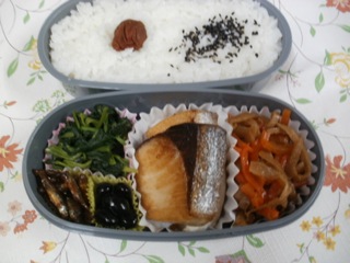 そうしゅです、ども。朝から雨ですが、お稽古で踊りっぱなしのせいか寒くありません。でも昨日から足が痛くて困る。手も痛くて足も痛くて四面楚歌だな。wwwそれでは今日のお弁当です。上の写真が昨日の鰤の塩焼き弁当下の写真が今日の豚生姜焼き弁当です。お弁当久しぶりに作りました。旦那の仕事の関係で、暫くお弁当作ってなかったけど、今月はお弁当の日がかなり多そうです。勘が鈍ってるからしばらく手間取りそうですね。