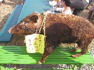 最近いのししが人家の近くに出没することが多く日本全国で話題になった.これもその内の一匹.残念ながら捕らえられてえさも与えられない.環境破壊がいのししのみならず他の動植物にも影響を与えているようだ.