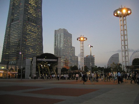 横浜ランドマークタワーへ向うエスカレータ.JR桜木町からランドマークタワーに向うにはこのエスカーレータとその次の歩く報道を数回乗り換えて向う必要がある.最初がこの登りのエスカレータ.夕暮れ迫る頃.