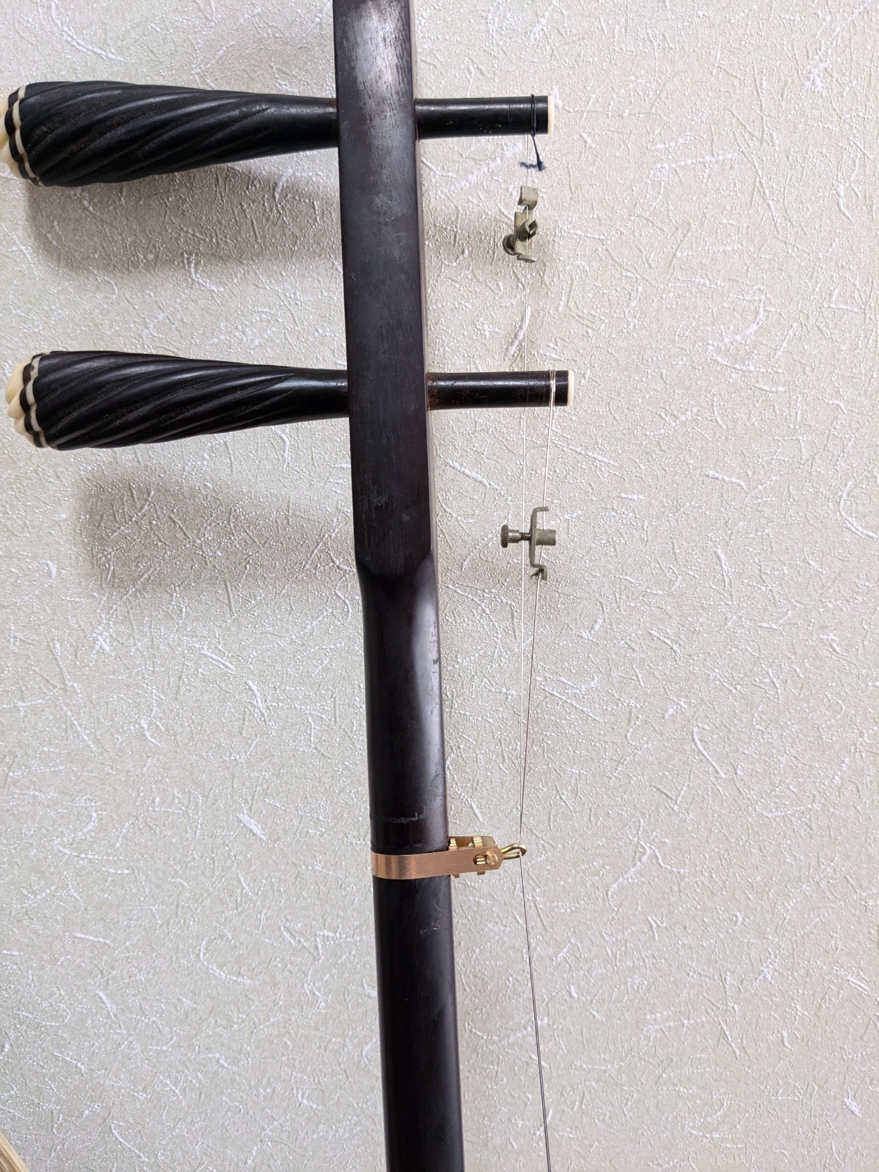 昨日のライブ中 弦が二本 切れた 力み過ぎ中断して 弦を張り替えて その後は 問題なかったがチューニングの微調整に使ってる 金具がない上の方の2つ 切れた弦の半分は回収できたが 金具だけ 遠くに吹っ飛んだようだ なので 今日 強力磁石を携えて 捜索 秋なので 枯葉だらけ こういう時はボケボケ母ちゃんの出番 磁石を紐にくっつけて 捜索結局 見つからず。。。 単純作業がんばった 母ちゃん 約15分 二胡ロック rock erhu rock electric erhu エレキ二胡 よろしゅう