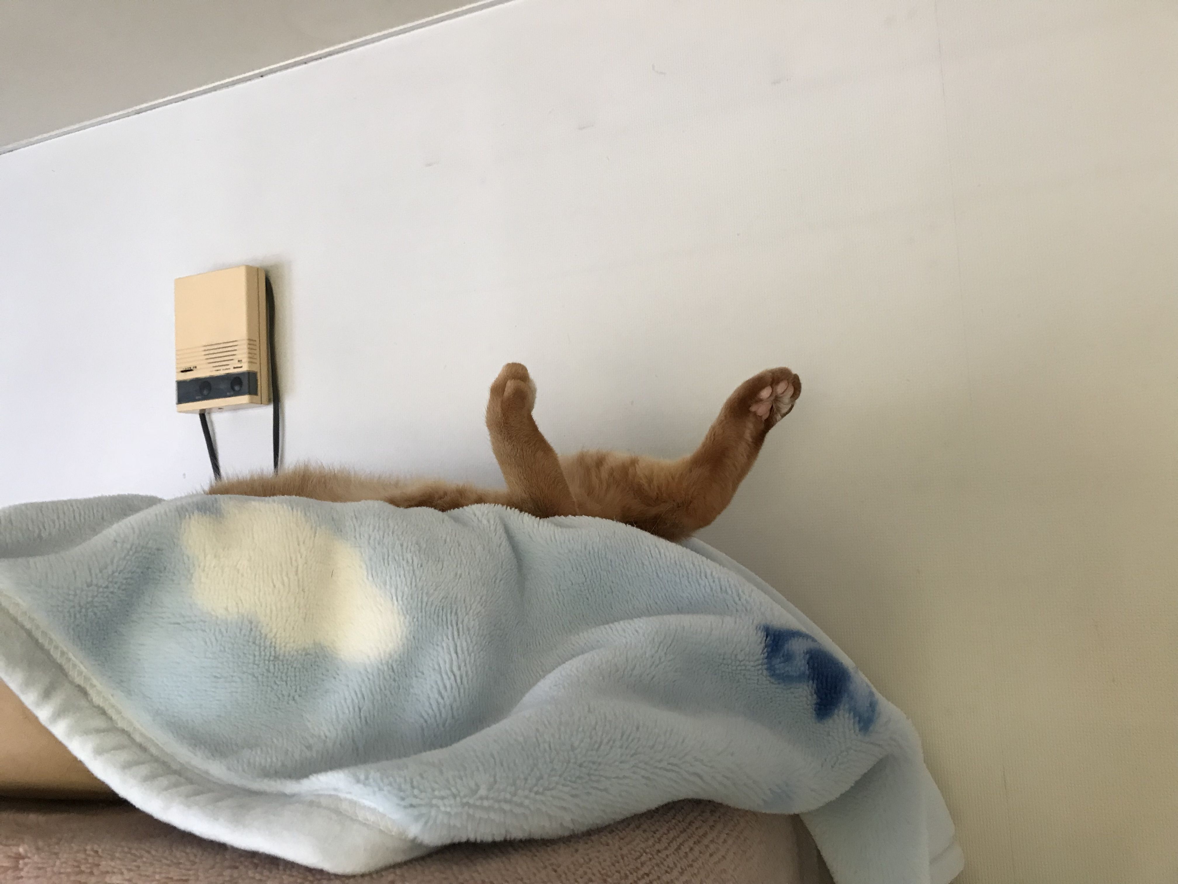 こういう姿を見ると、つい犬神家の一族を連想して、写真を写してしまうのは、歳のせいですよね。でも、ほら・・・気が付いて、肉球をキュッてしてるのが、可愛いし(=^・^=)