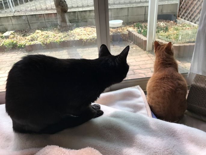 最高気温が18度まで上がって暖いので、布団を干しました。みんにゃは眠っているのに、ショコラだけお手伝いに来てくれました。シッポをふりふり、布団の上を歩いたりスズメやキジバトを見張ったり休憩したりあくびをしたりして、お手伝いしてくれます。でも、いつもは眠っている時間なので、本当は眠たいのです。う~~ん ねむたいわ~(˘ω˘)って顔をしています。頑張って、お手伝いしてくれたショコラには、抱っこと、撫でなでを、いっぱいしてあげました。ありがとうねショコラ。