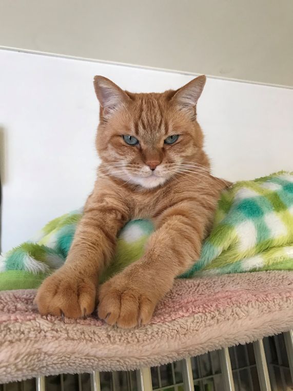 なせかドヤ顔してる今日の黄縞さん。痒みは治り、涙目も良くなっています。黄縞さんは、4日前に、大きな毛玉を吐き涙目でした。(毛玉は、痒みが強くて、自分で舐めたり噛んだりし過ぎ、毛を多量に飲み込んでしまった証拠品)黄縞さんは、食物だけでなく、色々な花粉や羽毛などにもアレルギー症状がでますので、今回もその初期症状でした。黄縞さんのアレルギー症状はまず、涙目と全身の痒み次に、吐き気と湿疹さらに、顔の腫れと浮腫み😡その後、下痢・発熱・連続的な嘔吐🤮により脱水・呼吸困難など重症化していきます。血液検査すると、肝機能や腎機能の数値もめちゃくちゃに高くなり危険な状態になっていきます。でも、今通っている動物病院では、服薬だけで、軽い症状のまま治り、重症化した事はありません。それに、他の病気の時も、治りが早くて、おかげで家の猫たちは、元気で長生きになりました。じつは、数年前まで、通院していた動物病院では、涙目と吐き気くらいの状態から治療をしても、一か月以上の通院になり、必ず重症化して、朝夕二回点滴に通っていました。とにかく治りが悪くて、黄縞さんは、一年の半分は通院していたし、死にかけた事もありました。それだけではなく、他の猫の下痢や膀胱炎も治りが悪くて、長く通院していました。つまり、簡単に言えば、今の獣医さんは、名医で、以前の動物病院は、やぶ医者だったようです。良い獣医さんと出会えるかどうかで、猫の寿命は変わります。黄縞さんだけじゃなく、うちのニャンズは、今の獣医さんに会えて幸運でした。おかげで、ミンにゃ元気で長生きしています。