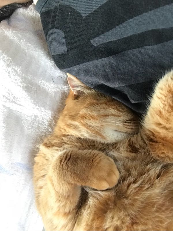 疲れたので 黄縞さんと一緒にお昼寝。 黄縞さんは、寄り添って ゴロゴロ・・・ 子守唄を歌ってくれます。 疲れもとれて、気分スッキリ ただ ちょっと重たくて、身体が痛くなる時があります。
