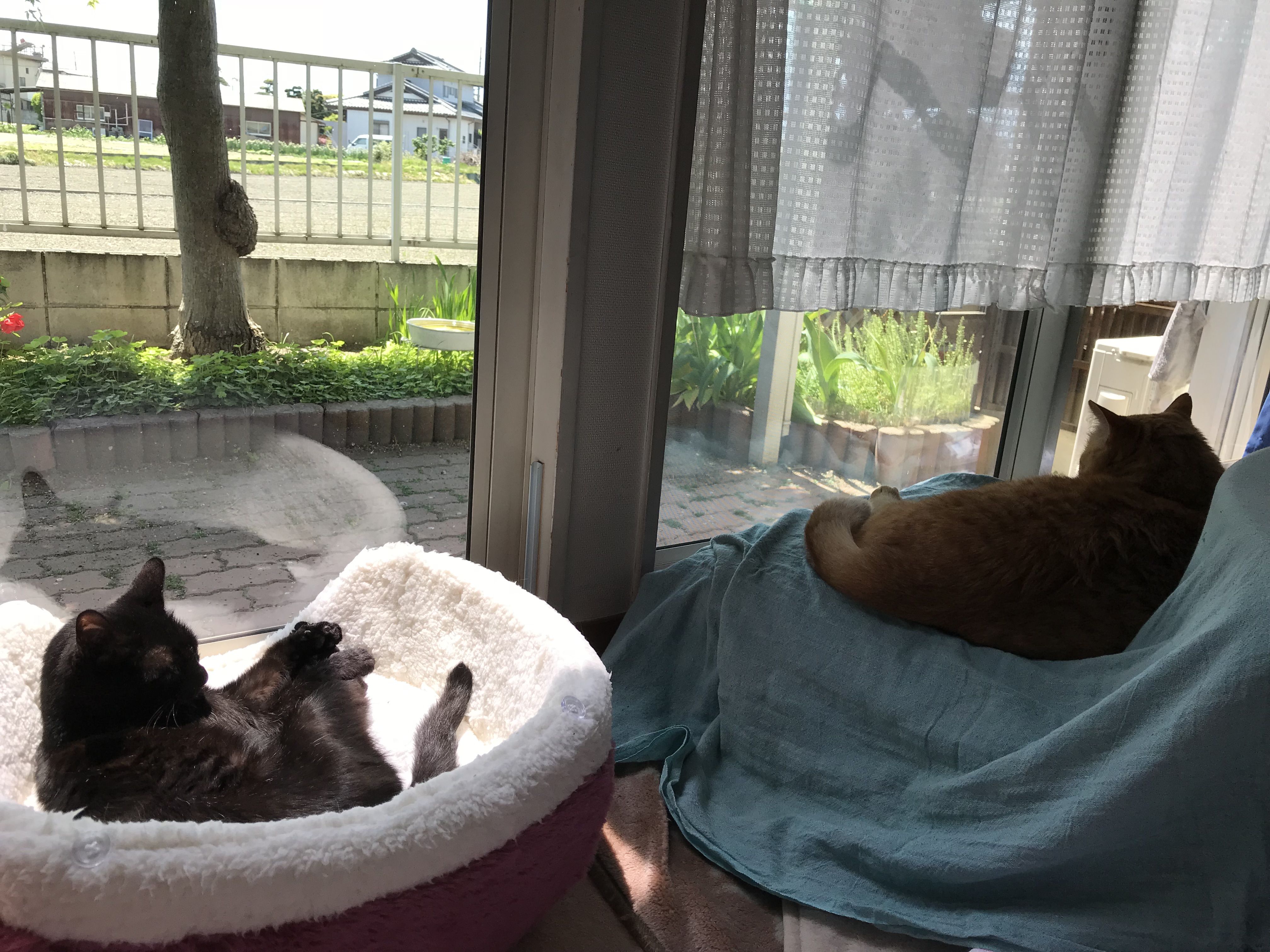 朝から気温が上がっているのが分かるのに! 日向ぼっこしてる紗羅(♀14歳) なぜ?日向で寝てるのかな。 しかも、 なんだか魂が抜けたような顔になってるし、大丈夫なのかな? しばらくしてみると 同じ場所に、こんどはショコラ(♀13歳)が居て 暑さに溶けかけてるみたいなポーズになってました。 暑過ぎるから、日陰で寝なさい と、声をかけると 目をパッチリ開けました。 紗羅とショコラ 色の濃い2猫(ににゃん)は 日向ぼっこが大好きです。 気温が高くて暑いはずなのに どうして日向にいるのでしょうか?
